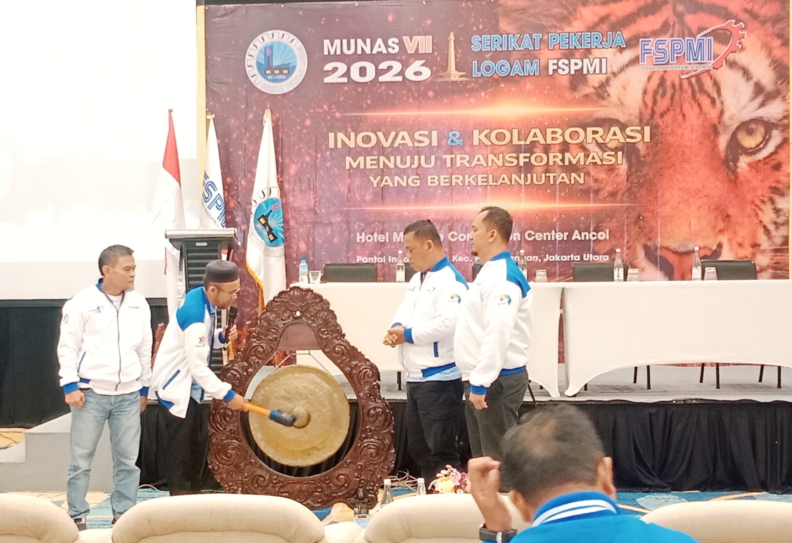 Munas VII SPL FSPMI kemudian dibuka secara resmi melalui pemukulan gong oleh Sekretaris Jenderal DPP FSPMI, didampingi Ketua Umum PP SPL FSPMI, Sekretaris Umum, dan Bendahara Umum PP SPL FSPMI. Forum ini diharapkan menjadi momentum konsolidasi organisasi sekaligus penguatan peran SPL FSPMI dalam memperjuangkan dan melindungi hak-hak pekerja di Indonesia.