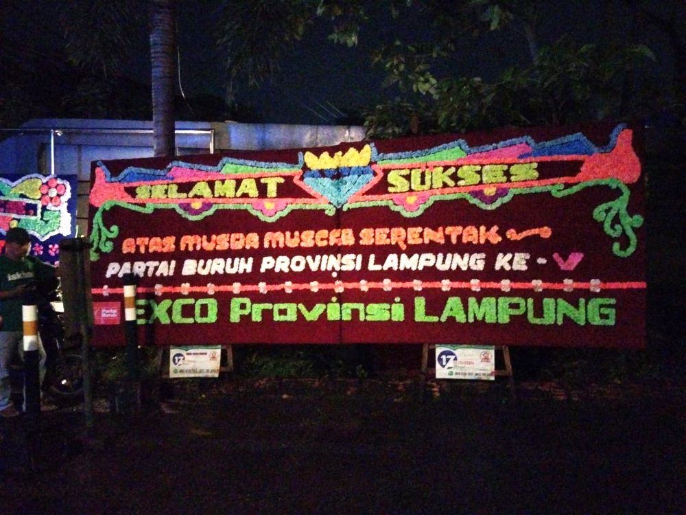 Karangan Bunga Sambut Musda dan Muscab Partai Buruh Lampung ke-V di Hotel Aston